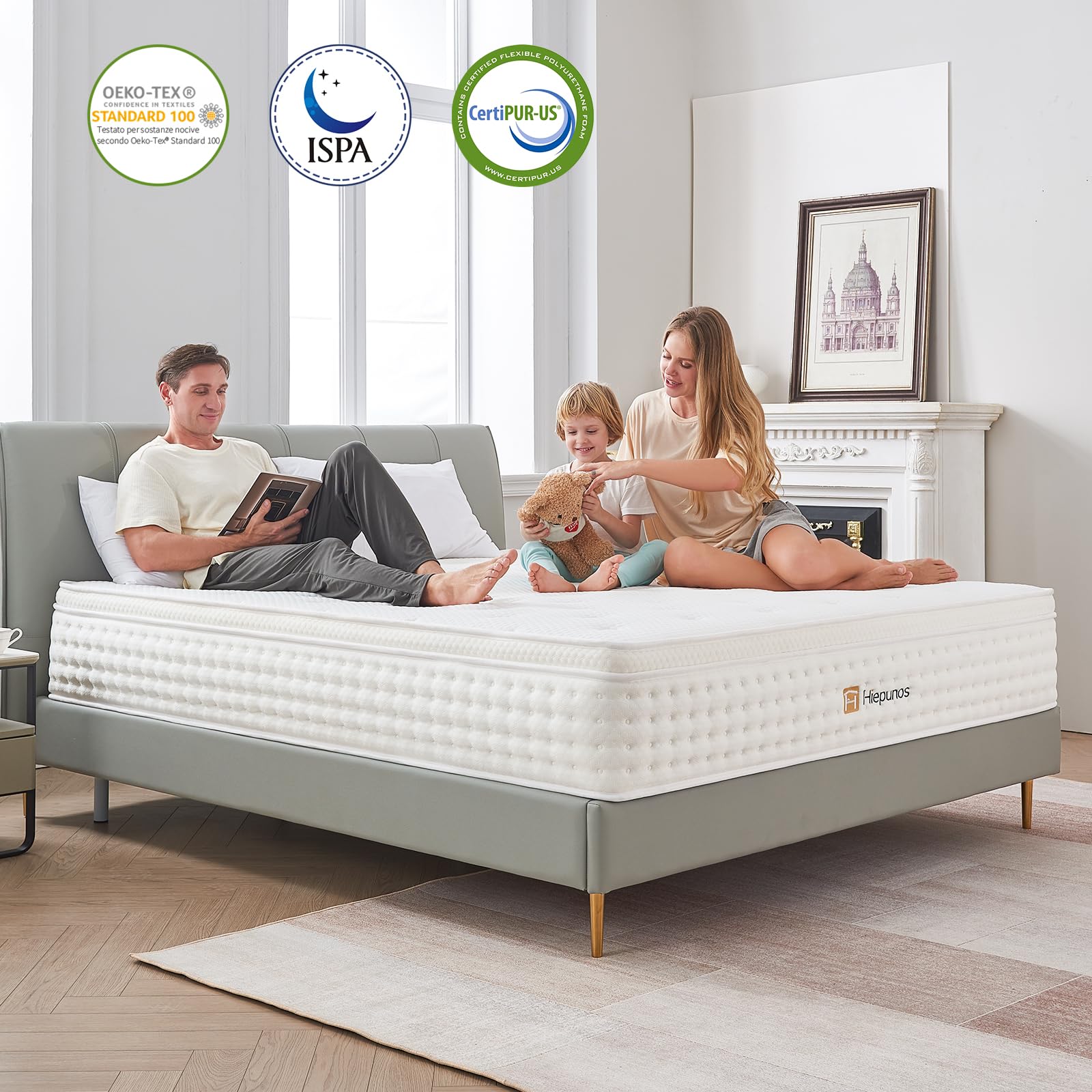 Hiepunos Matratze 140x200 cm 26cm Höhe 7-Zonen Federkernmatratze Orthopädische Taschenfederkernmatratze mit Comfort Memory-Schaum Schicht, Härtegrad H3, Rückenentlastende, 100 Nächte Probeschlafen
