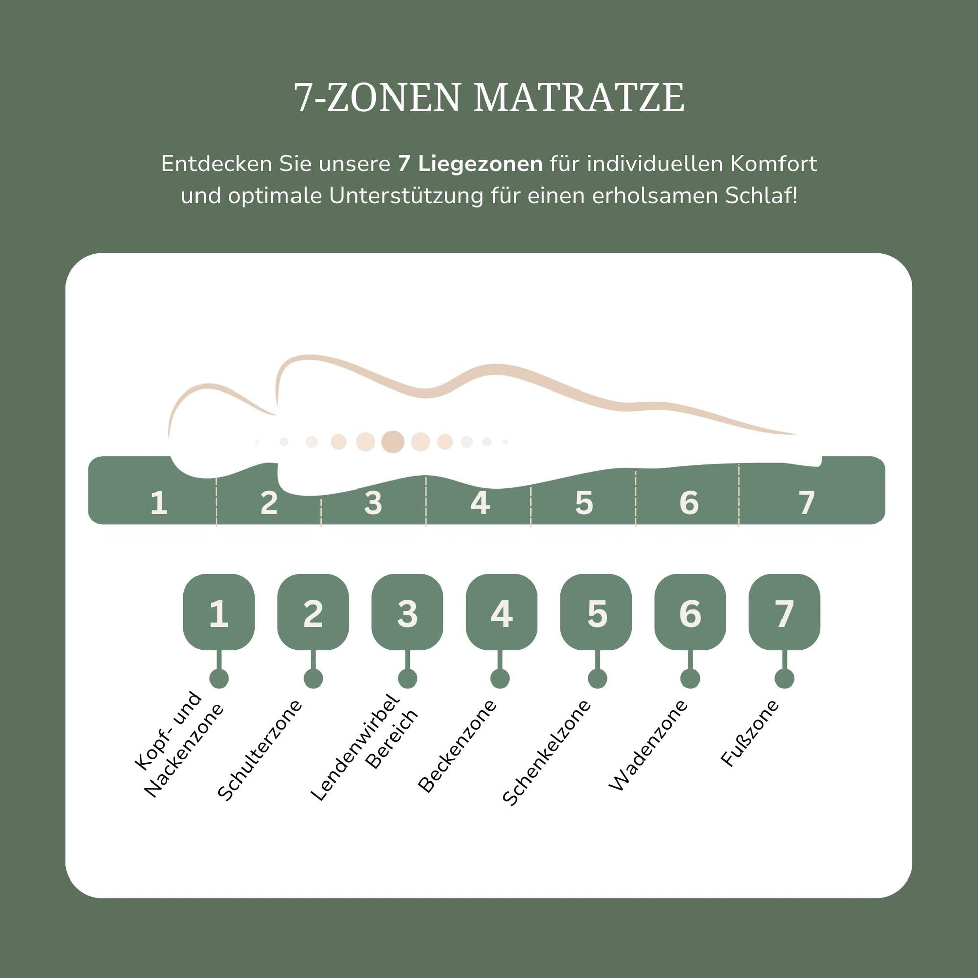- Ergonomische Liegefläche: Die 7-Zonen-Technologie unserer Federkernmatratze unterstützt jede Körperregion punktgenau und sorgt folglich für eine stets optimale Schlafposition, egal ob als Seiten-, Rücken-, oder Bauchschläfer.