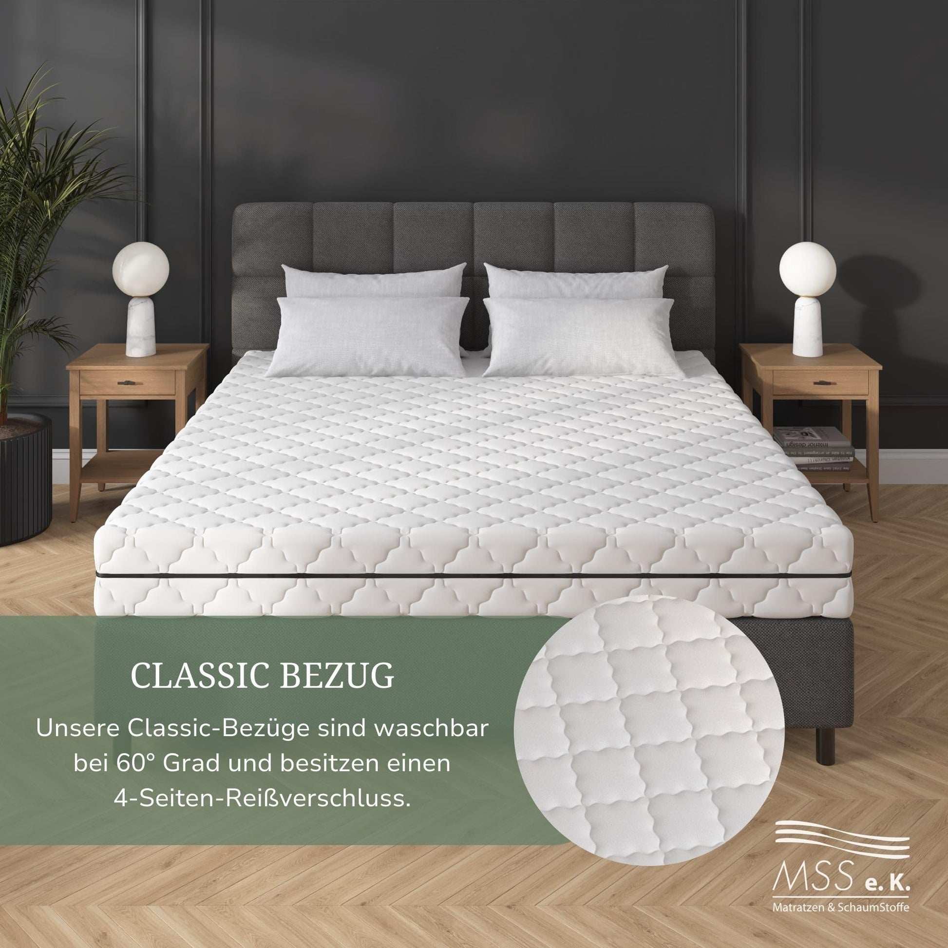 - Praktischer Bezug: Hergestellt aus feinster Microfaser und ausgestattet mit einem 4-Seiten-Reißverschluss ist unser CLASSIC Bettmatratzen-Bezug in schicker Karosteppung allergikerfreundlich sowie waschmaschinenfest bei bis zu 60°C.