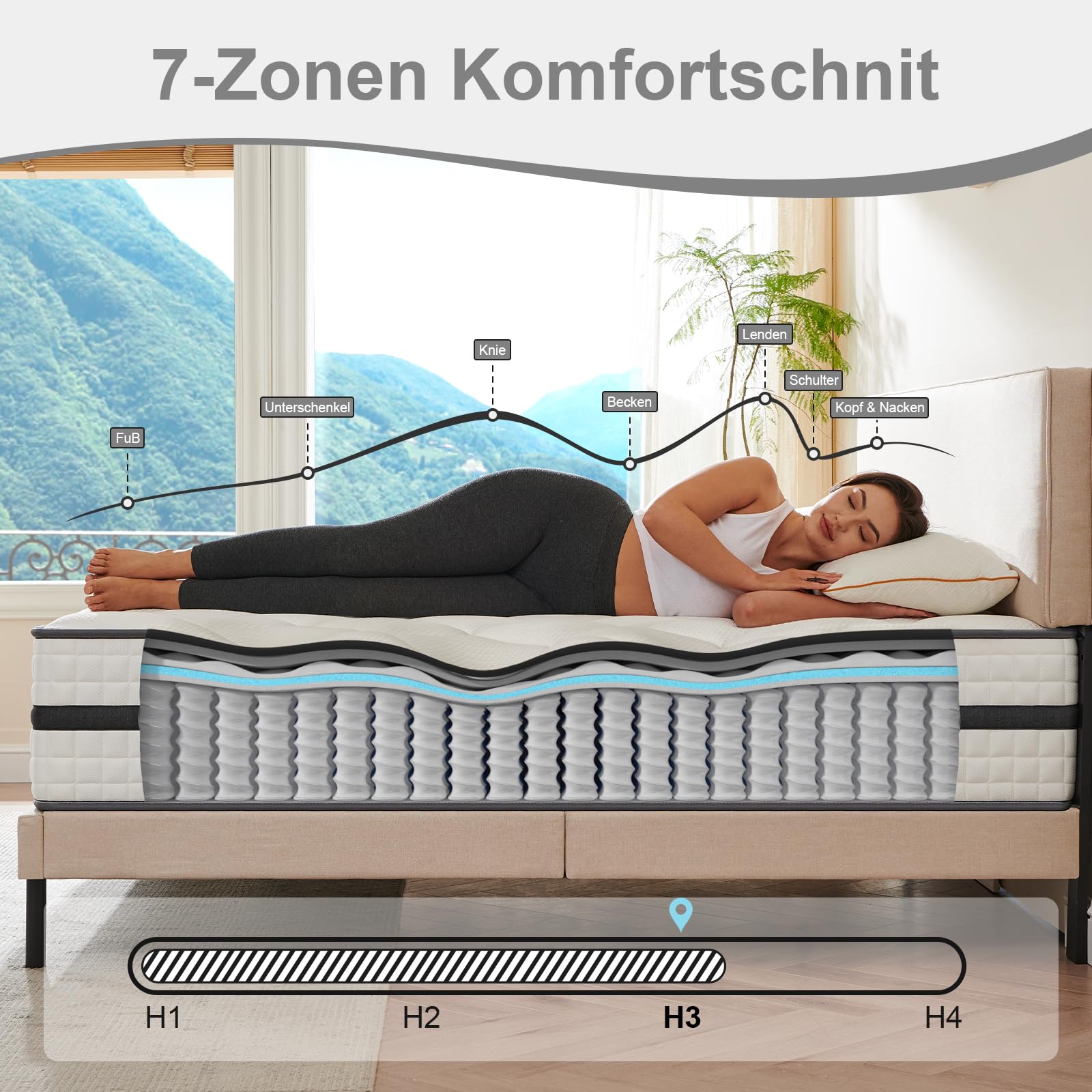 - HOCHWERTIGE MATERIALIEN: Wir verwenden hochwertige Taschenfedern. Jede Feder funktioniert unabhängig, wodurch nicht nur die Luft in der Matratze zirkuliert, sondern auch das Körpergewicht intelligent verteilt und eine ausgewogene Unterstützung geboten wird